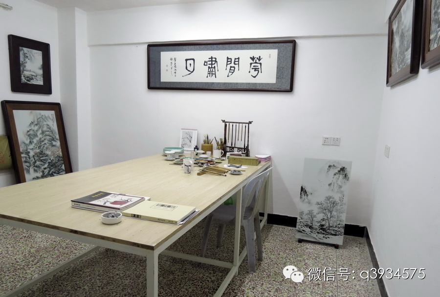 陈:说明一点,我不是艺术家,这只是个人的一种习惯罢了!第一,从小我就养成工整严谨的生活方式,但我没有洁癖;第二,我喜欢简约明净,这对画瓷画的我有很大的帮助。瓷板是洁白的,在上面画画讲究细节和干净。第三,整洁的环境也给了我可以清明思考的空间。